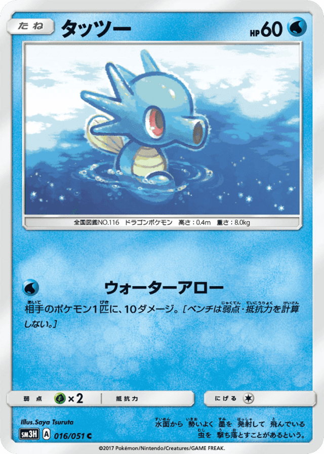 Water ArrowCost: 1相手のポケモン1匹に、10ダメージ。[ベンチは弱点・抵抗力を計算しない。]