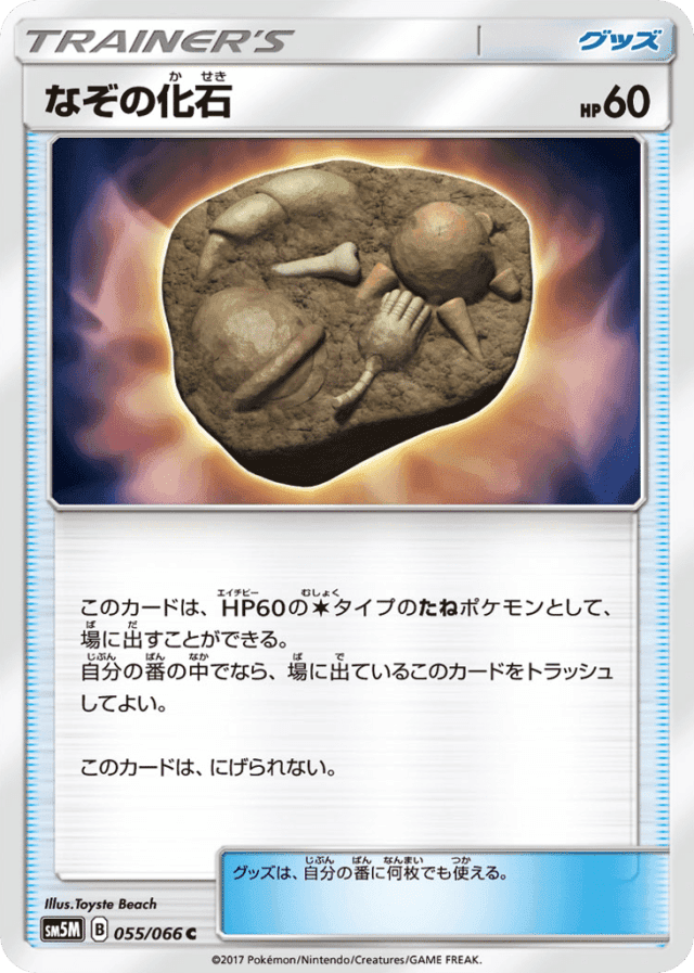 このカードは、HP60のColorlessタイプのたねポケモンとして、場に出すことができる。<br> 自分の番の中でなら、場に出ているこのカードをトラッシュしてよい。 このカードは、にげられない。 グッズは、自分の番に何枚でも使える。