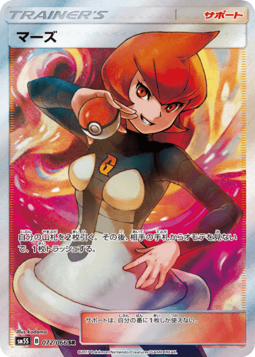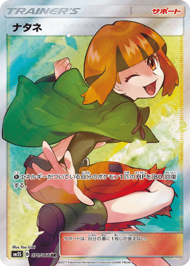 - Grassエネルギーがついている自分のポケモン1匹のHPを「80」回復する。 — サポートは、自分の番に1枚しか使えない。