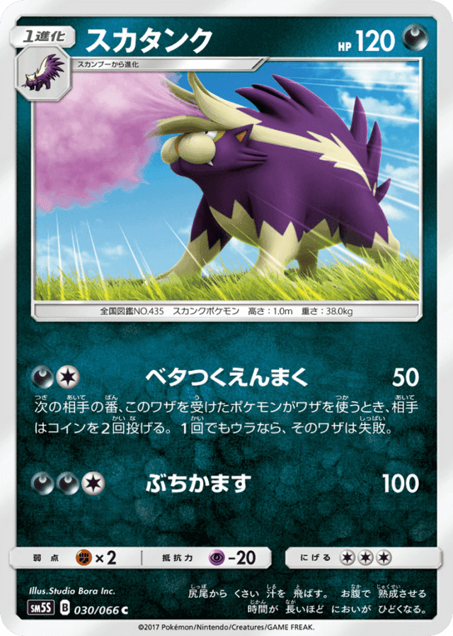 Sticky Smokescreen50Cost: 2次の相手の番、このワザを受けたポケモンがワザを使うとき、相手はコインを2回投げる。1回でもウラなら、そのワザは失敗。