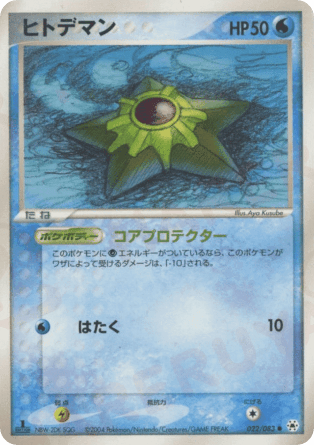 If Staryu has any Psychic Energy attached to it, damage done to Staryu by any attack is reduced by 10 (after applying Weakness and Resistance).
