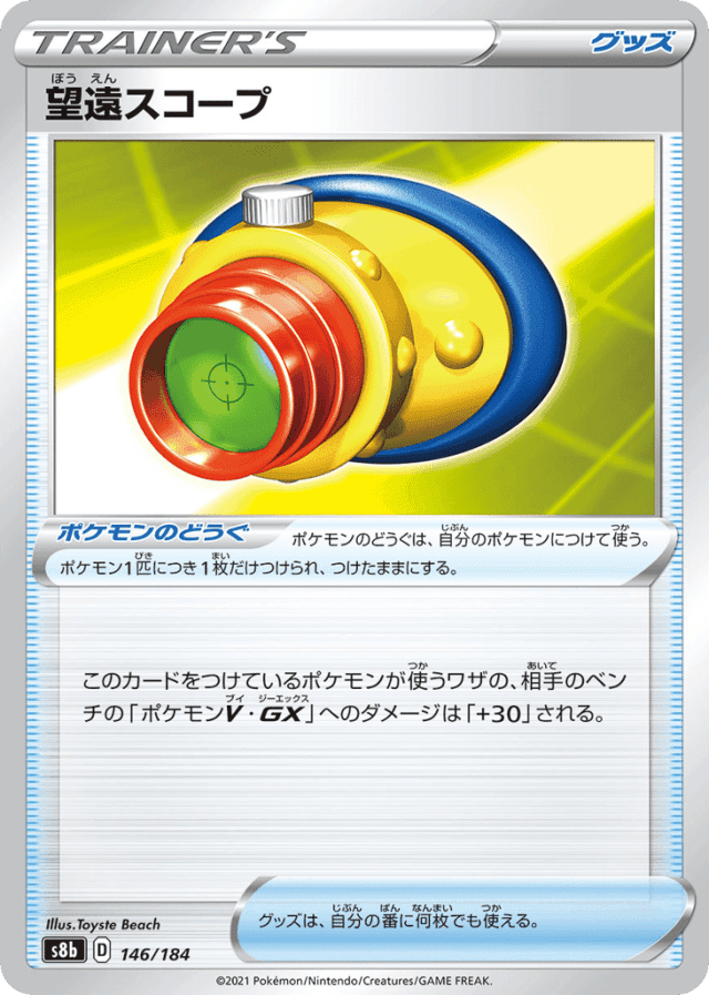 - このカードをつけているポケモンが使うワザの、相手のベンチの「ポケモンV・GX」へのダメージは「+30」される。