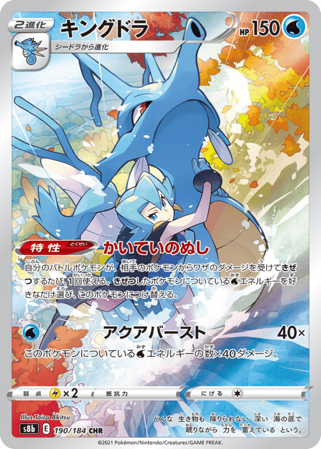 Aqua Burst40×Cost: 1このポケモンについているWaterエネルギーの数×40ダメージ。