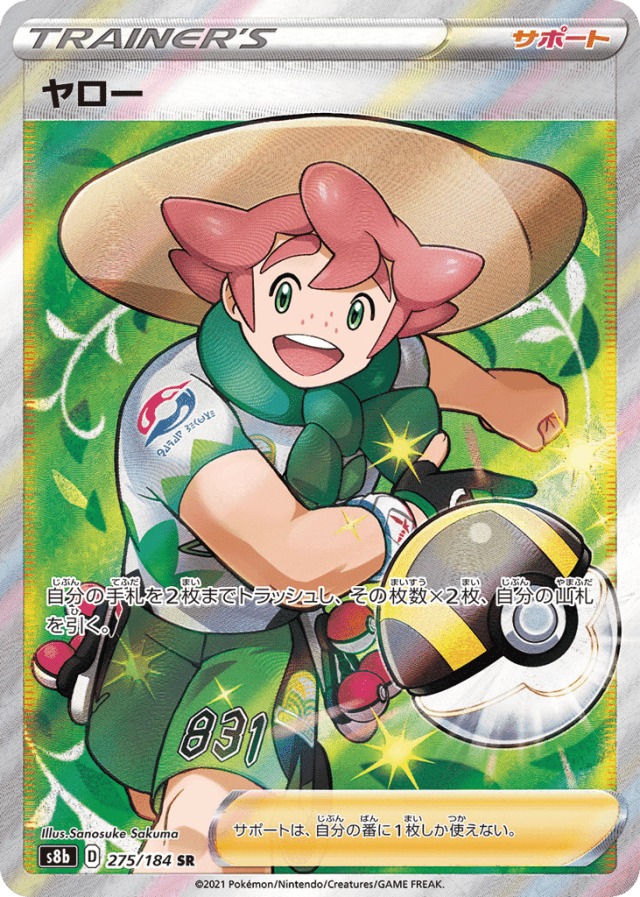 自分の手札を2枚までトラッシュし、その枚数×2枚、自分の山札を引く。 サポートは、自分の番に1枚しか使えない。