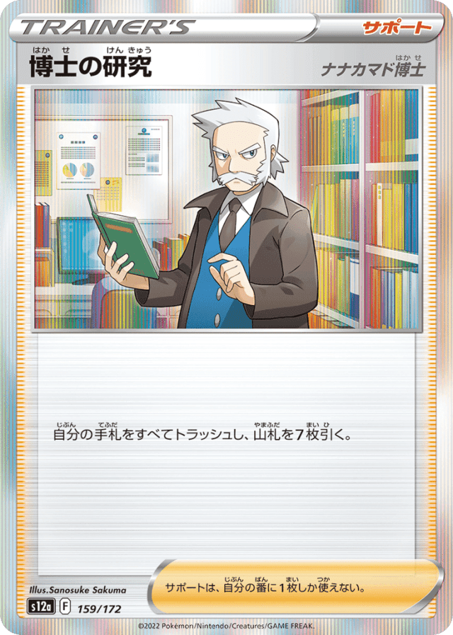 自分の手札をすべてトラッシュし、山札を7枚引く。 サポートは、自分の番に1枚しか使えない。