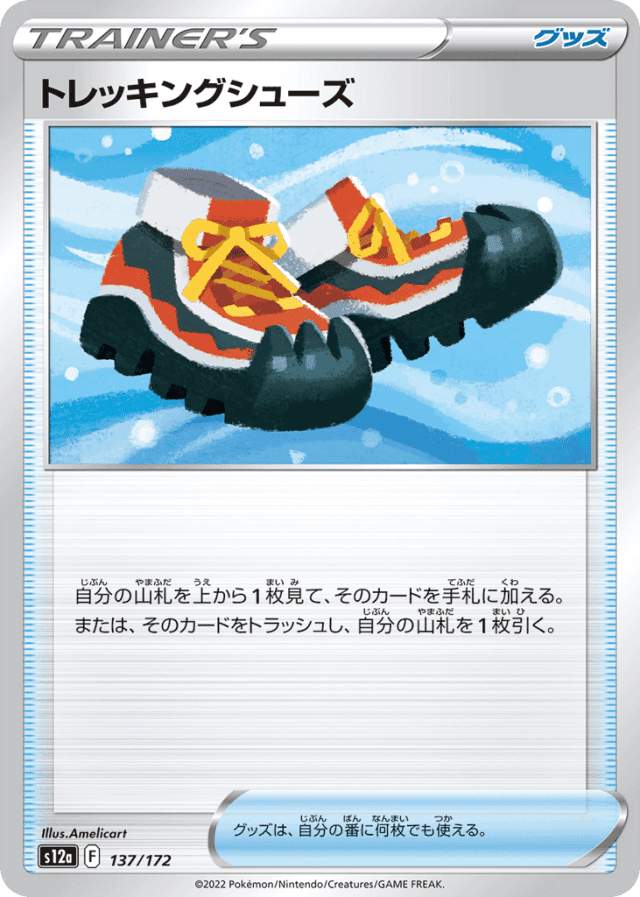 自分の山札を上から1枚見て、そのカードを手札に加える。または、そのカードをトラッシュし、自分の山札を1枚引く。 グッズは、自分の番に何枚でも使える。