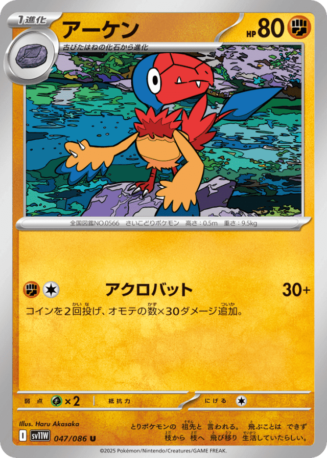とりポケモンの 祖先と 言われる。 飛ぶことは できず 枝から 枝へ 飛び移り 生活していたらしい。