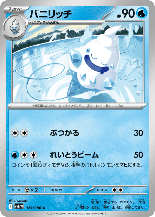 Ice Edge50Cost: 3コインを1回投げオモテなら、相手のバトルポケモンをマヒにする。