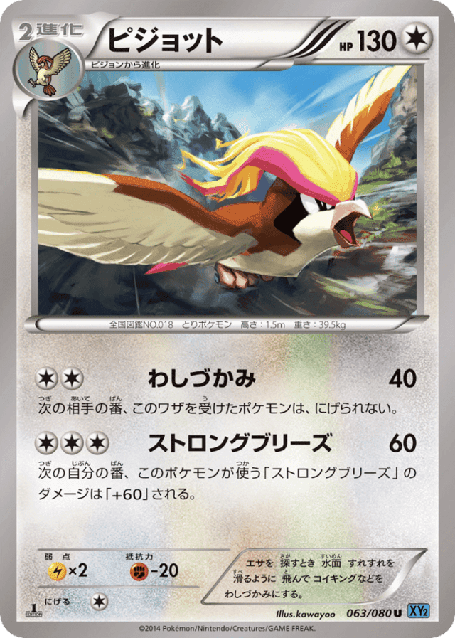 Strong Gust60Cost: 3次の自分の番、このポケモンが使う「ストロングブリーズ」のダメージは「+60」される。