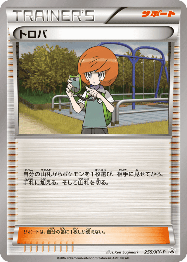 自分の山札からポケモンを1枚選び、相手に見せてから、手札に加える。そして山札を切る。 サポートは、自分の番に1枚しか使えない。