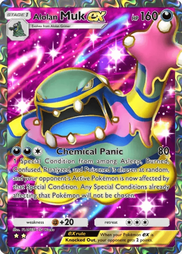 1 Special Condition from among Asleep, Burned, Confused, Paralyzed, and Poisoned is chosen at random, and your opponent's Active Pokémon is now affected by that Special Condition. Any Special Conditions already affecting that Pokémon will not be chosen.