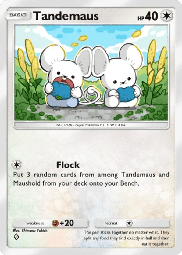 Put 3 random cards from among Tandemaus and Maushold from your deck onto your Bench.