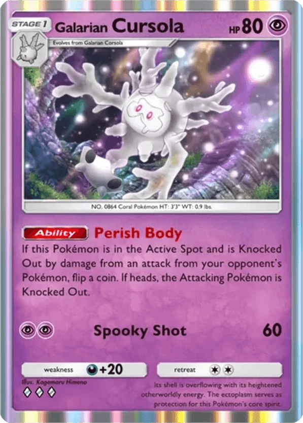 If this Pokémon is in the Active Spot and is Knocked Out by damage from an attack from your opponent's Pokémon, flip a coin. If heads, the Attacking Pokémon is Knocked Out.