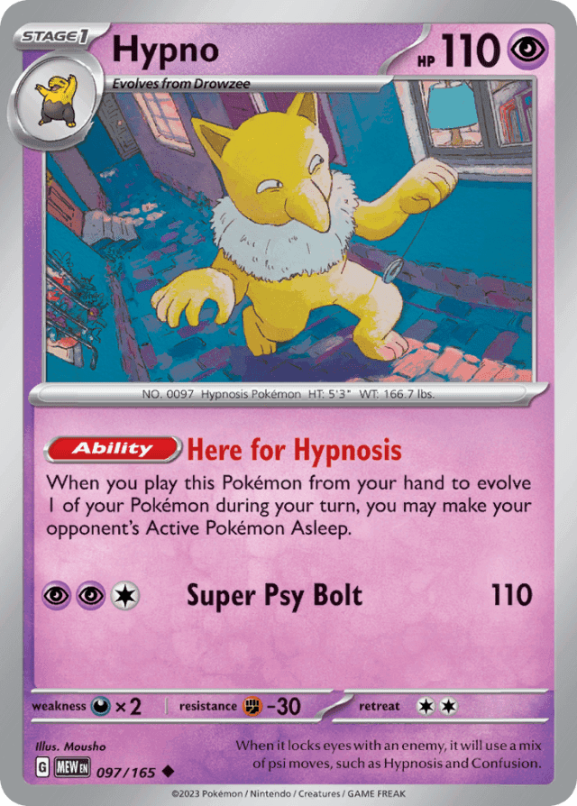 When you play this Pokémon from your hand to evolve 1 of your Pokémon during your turn, you may make your opponent's Active Pokémon Asleep.