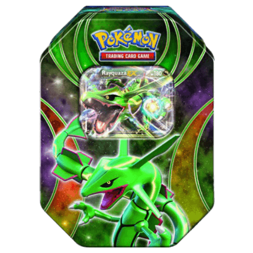 Factory-sealed Pokémon tin from the XY series titled Ancient Origins Powers Beyond Tin - Rayquaza EX. This official Pokémon product centers on Rayquaza EX and ties to the Ancient Origins expansion (AOR) released August 12, 2015. Geared toward collectors and players focused on XY-era sets and Pokémon-EX cards, the tin offers a collectible, protective package that preserves set-themed promo material from Ancient Origins. Buyers and collectors can expect an authentic, set-branded tin suitable for display, storage, or adding to an XY/Ancient Origins collection. The item is identified by set name Ancient Origins and set code AOR, making it straightforward to match with other pieces from the 2015 expansion.