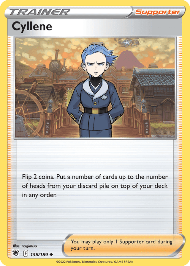 Flip 2 coins. Put a number of cards up to the number of heads from your discard pile on top of your deck in any order. You may play only 1 Supporter card during your turn.