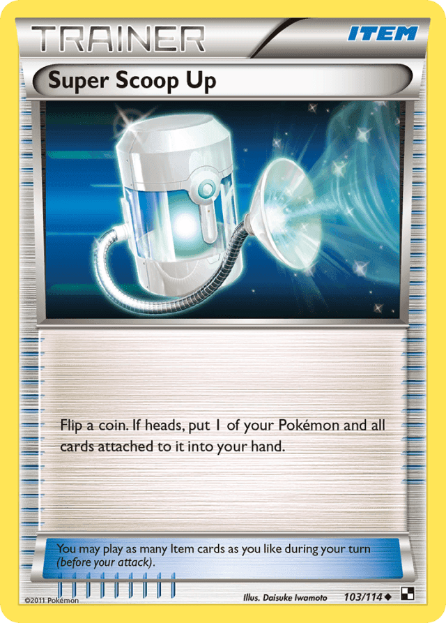 Flip a coin. If heads, put 1 of your Pokémon and all cards attached to it into your hand. You may play as many Item cards as you like during your turn (before your attack).