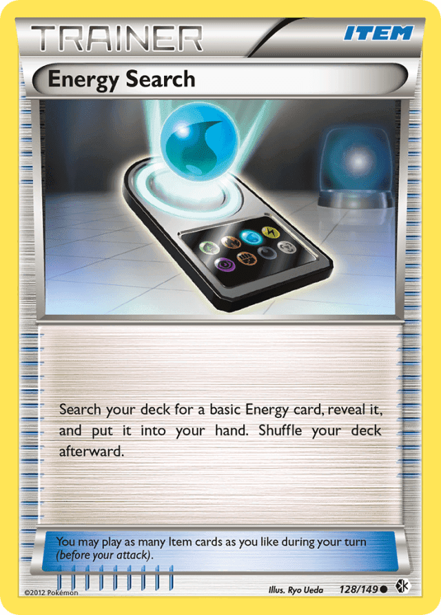 Search your deck for a basic Energy card, reveal it, and put it into your hand. Shuffle your deck afterward. You may play as many Item cards as you like during your turn (before your attack).