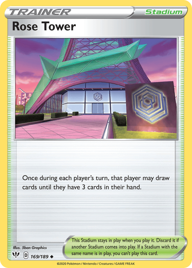 Once during each player's turn, that player may draw cards until they have 3 cards in their hand. This Stadium stays in play when you play it. Discard it if another Stadium comes into play. If a Stadium with the same name is in play, you can't play this card.