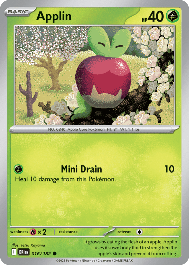 It grows by eating the flesh of an apple. Applin uses its own body fluid to strengthen the apple's skin and prevent it from rotting.