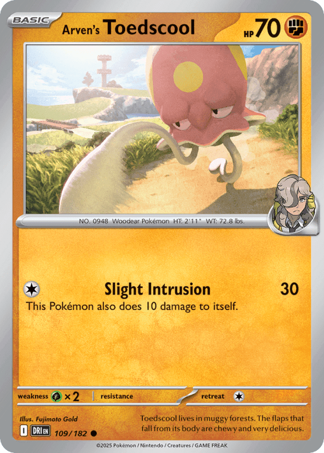 Toedscool lives in muggy forests. The flaps that fall from its body are chewy and very delicious.