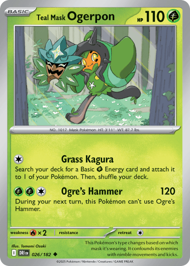 This Pokémon's type changes based on which mask it's wearing. It confounds its enemies with nimble movements and kicks.