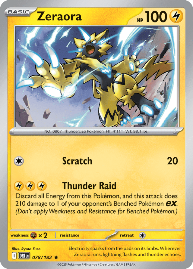 Electricity sparks from the pads on its limbs. Wherever Zeraora runs, lightning flashes and thunder echoes.