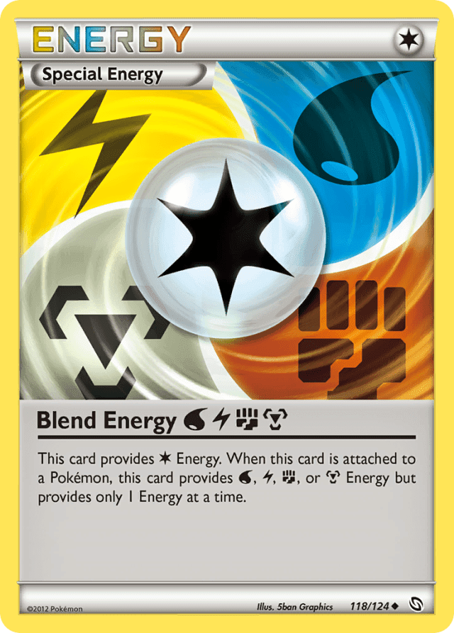 This card provides Colorless Energy. When this card is attached to a Pokémon, this card provides Water, Lightning, Fighting, or Metal Energy but provides only 1 Energy at a time.