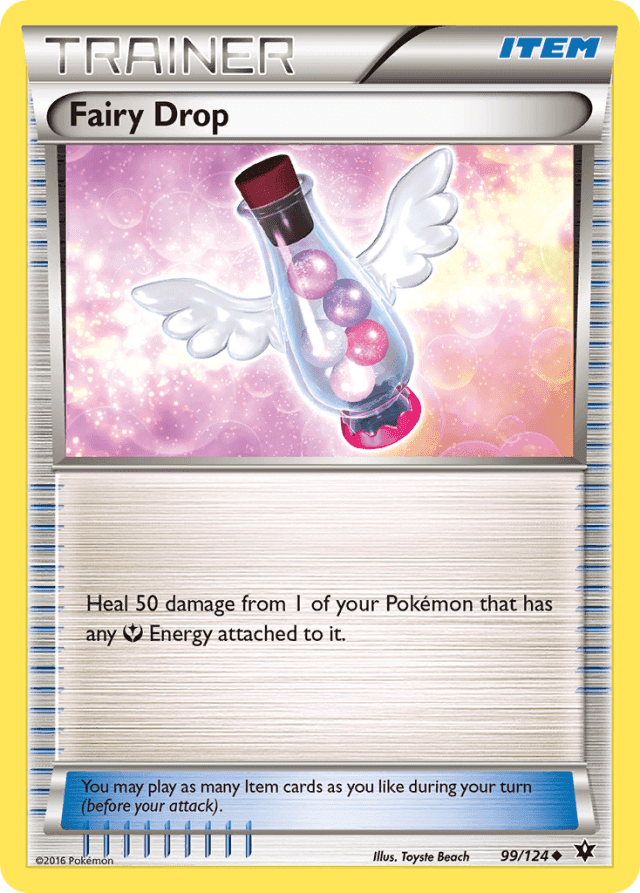 Heal 50 damage from 1 of your Pokémon that has any Fairy Energy attached to it. You may play as many Item cards as you like during your turn (before your attack).