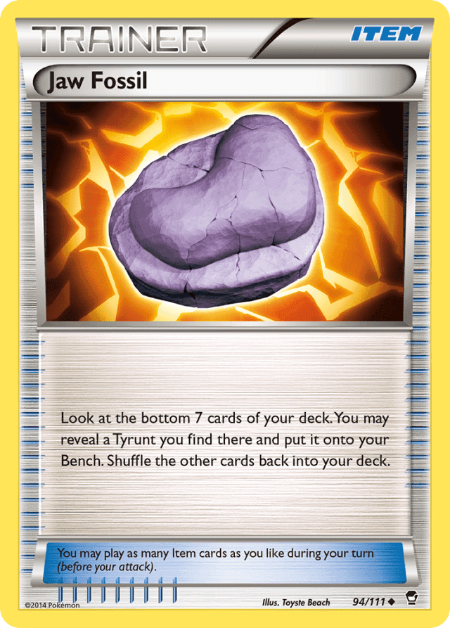 Look at the bottom 7 cards of your deck. You may reveal a Tyrunt you find there and put it onto your Bench. Shuffle the other cards back into your deck. You may play as many Item cards as you like during your turn (before your attack).