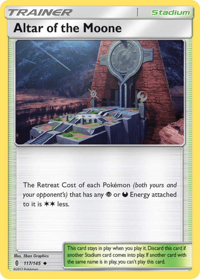The Retreat Cost of each Pokémon (both yours and your opponent's) that has any Psychic or Darkness Energy attached to it is ColorlessColorless less. This card stays in play when you play it. Discard this card if another Stadium card comes into play. If another card with the same name is in play, you can't play this card.