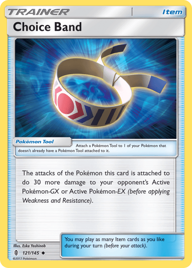 Attach a Pokémon Tool to 1 of your Pokémon that doesn't already have a Pokémon Tool attached to it. The attacks of the Pokémon this card is attached to do 30 more damage to your opponent's Active Pokémon-GX or Active Pokémon-EX (before applying Weakness and Resistance). You may play as many Item cards as you like during your turn (before your attack).