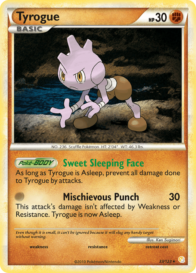 This attack's damage isn't affected by Weakness or Resistance. Tyrogue is now Asleep.