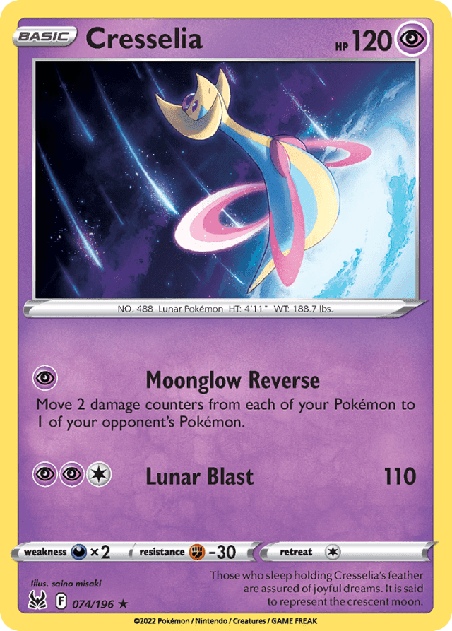 Those who sleep holding Cresselia's feather are assured of joyful dreams. It is said to represent the crescent moon.