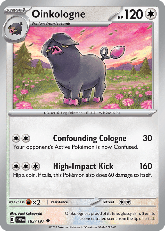 Oinkologne is proud of its fine, glossy skin. It emits a concentrated scent from the tip of its tail.