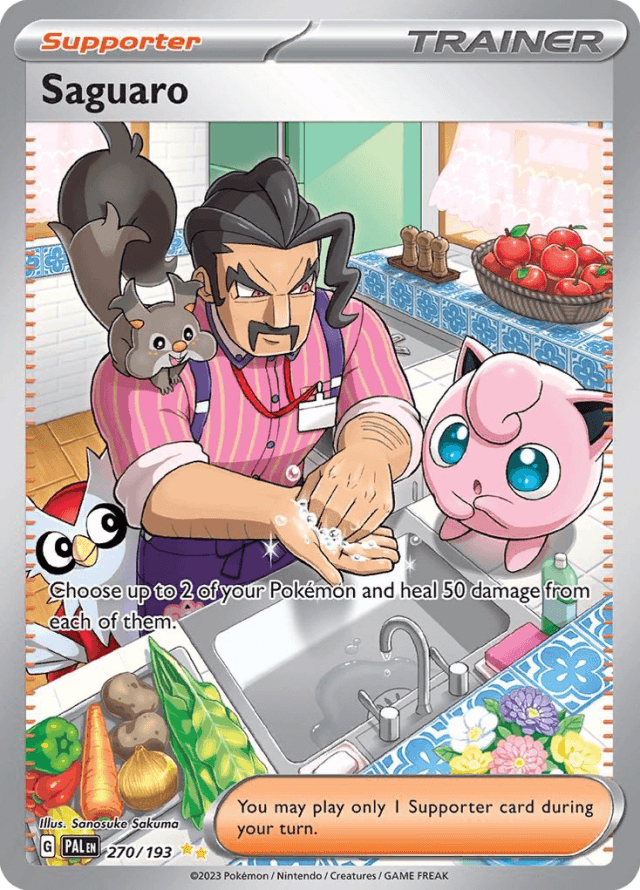 Choose up to 2 of your Pokémon and heal 50 damage from each of them. You may play only 1 Supporter card during your turn.