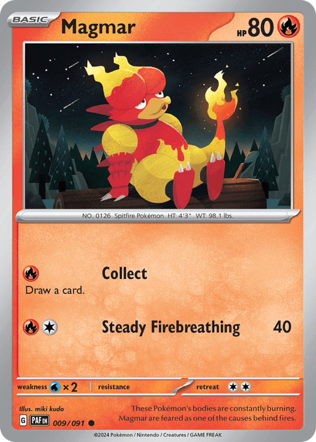 These Pokémon's bodies are constantly burning. Magmar are feared as one of the causes behind fires.