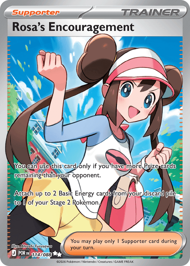 You can use this card only if you have more Prize cards remaining than your opponent. Attach up to 2 Basic Energy cards from your discard pile to 1 of your Stage 2 Pokémon. You may play only 1 Supporter card during your turn.
