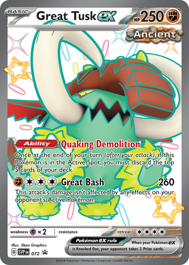 Once at the end of your turn (after your attack), if this Pokémon is in the Active Spot, you must discard the top 5 cards of your deck.
