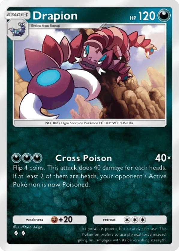 Flip 4 coins. This attack does 40 damage for each heads. If at least 2 of them are heads, your opponent's Active Pokémon is now Poisoned.