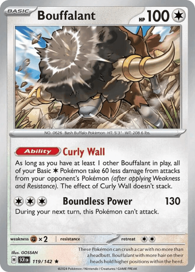These Pokémon can crush a car with no more than a headbutt. Bouffalant with more hair on their heads hold higher positions within the herd.
