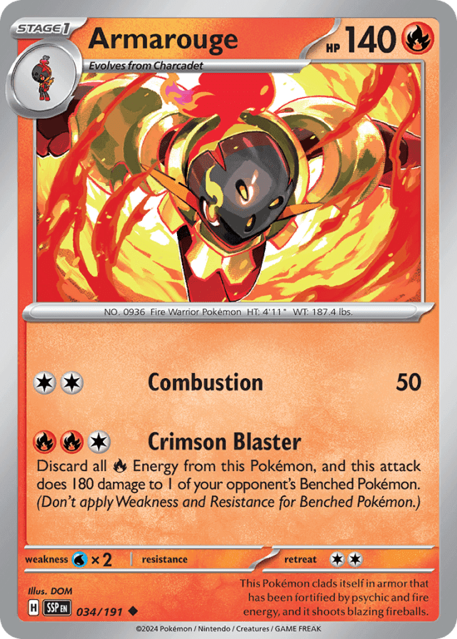 This Pokémon clads itself in armor that has been fortified by psychic and fire energy, and it shoots blazing fireballs.