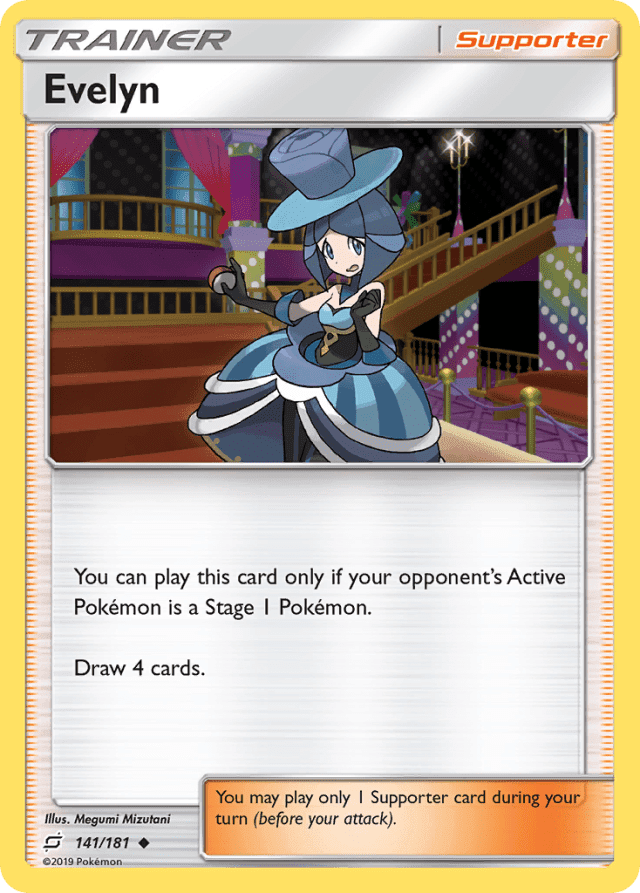 You can play this card only if your opponent's Active Pokémon is a Stage 1 Pokémon. Draw 4 cards. You may play only 1 Supporter card during your turn (before your attack).