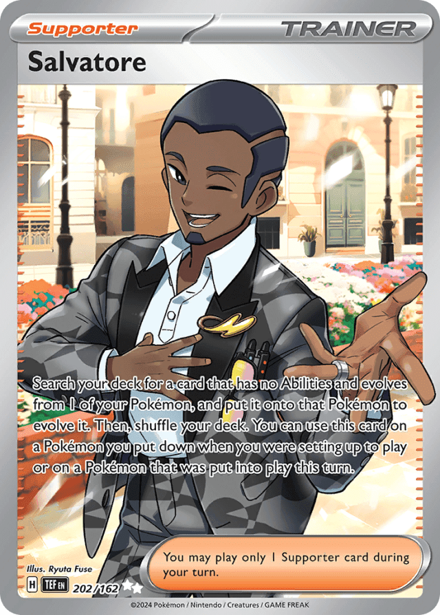 Search your deck for a card that has no Abilities and evolves from 1 of your Pokémon, and put it onto that Pokémon to evolve it. Then, shuffle your deck. You can use this card on a Pokémon you put down when you were setting up to play or on a Pokémon that was put into play this turn. You may play only 1 Supporter card during your turn.