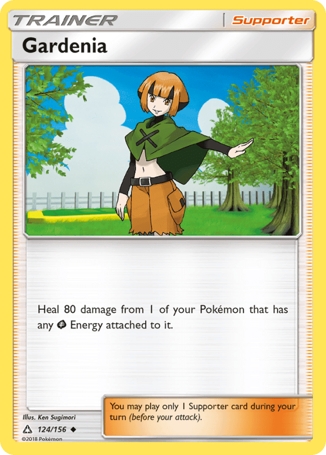 Heal 80 damage from 1 of your Pokémon that has any Grass Energy attached to it. You may play only 1 Supporter card during your turn (before your attack).