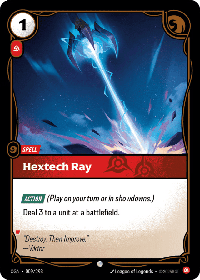 [Action] (Play on your turn or in showdowns.) Deal 3 to a unit at a battlefield.