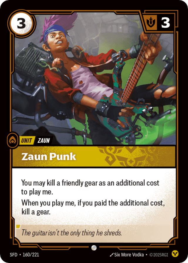 You may kill a friendly gear as an additional cost to play me. When you play me, if you paid the additional cost, kill a gear.