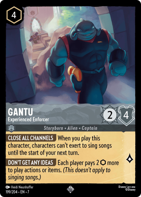 When you play this character, characters can't exert to sing songs until the start of your next turn.