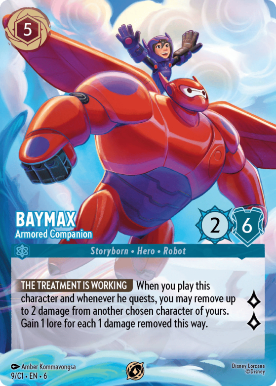 When you play this character and whenever he quests, you may remove up to 2 damage from another chosen character of yours. Gain 1 lore for each 1 damage removed this way.