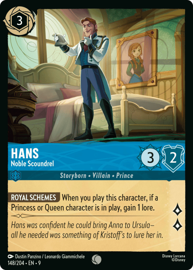 When you play this character, if a Princess or Queen character is in play, gain 1 lore.